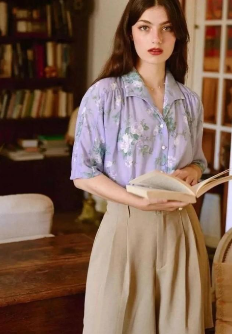 Dresses or shirts with floral patterns highlight the fresh and elegant countryside style but also add complexity to the outfit coordination. In the overall ensemble, it's essential to strike a balance between complexity and simplicity, avoiding an overly cluttered appearance with too many different floral patterns. If you're wearing a floral shirt, opt for simpler pants styles, such as solid-colored basics, to maintain a balanced look with a layered effect.